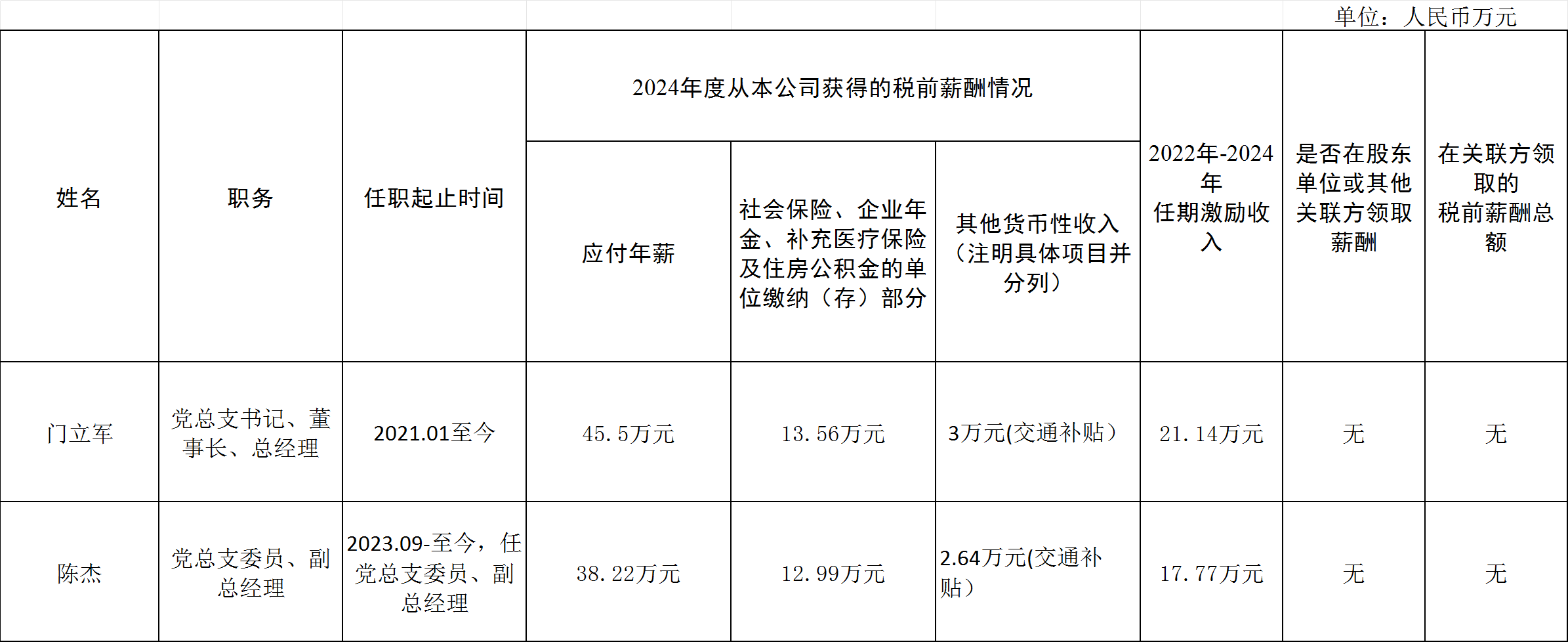 2024年度企业负责人薪酬信息公示